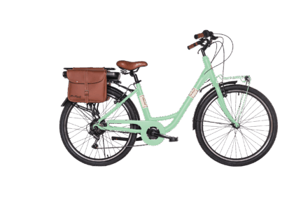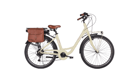 La e bike classic donna 28 Via Veneto è la scelta ideale per chi vuole una bici a pedalata assistita donna dallo stile classico, funzionale e perfetta per la città. Con ruote da 28″, telaio in alluminio, cambio Shimano a 6 velocità e finiture eleganti, questa e bike classic combina estetica retrò e tecnologia per gli spostamenti urbani quotidiani.