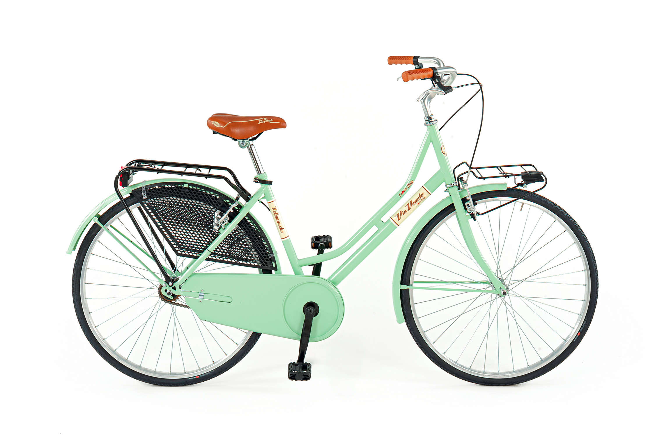 Peso/Weigth: 15,5 kg – Telaio/Frame: acciaio/Steel – Forcella/Fork: acciaio/Steel – Cerchi/Rims: 26″ alluminio/Aluminium – Ruota/ libera/Free wheels: 18T – Mozzi/Hubs: ย CP acciaio/ CP Steel – Guarnitura/Crankset:ย 42T acciaio/42T Steelย –ย Manubrio/Handlebar: Alluminio/Aluminium – Sella/Saddle: Via Veneto Ergofit Bassano Selle – Accessori/Accessories: Parafanghi, Carter, Manopole, Fanale, Portacesto, Portapacchi, Paraveste/Fenders, Chain cover, Soft grips, Led, Baske Holder, Carrier, Paraveste.